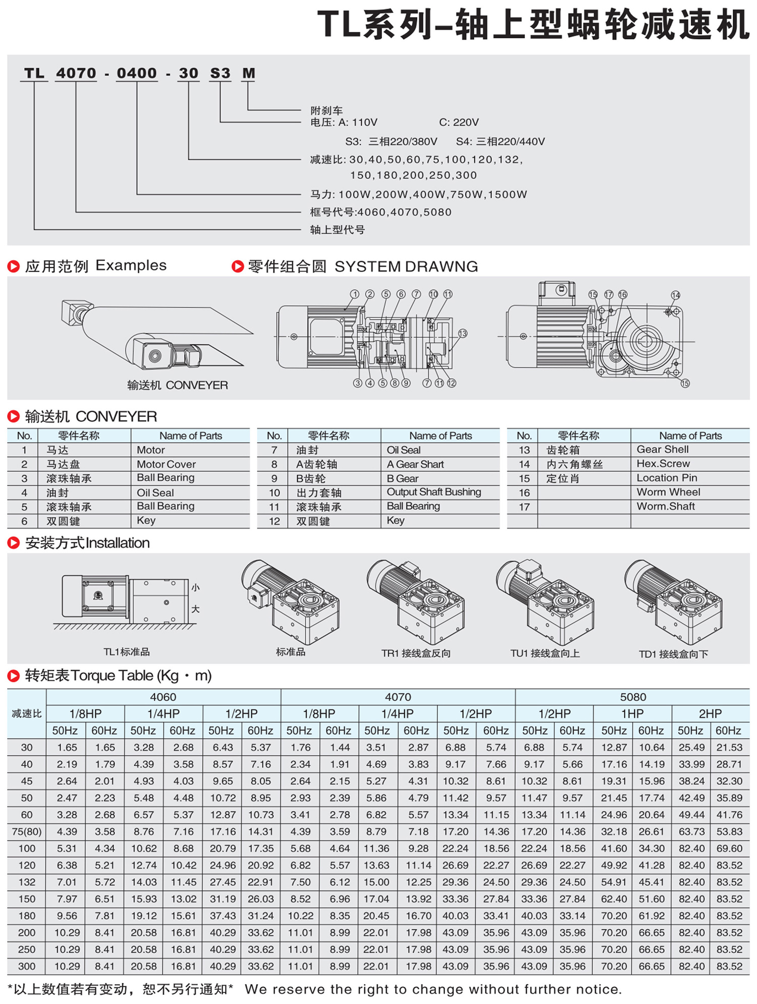 PL,GL,PF,GF型(卧室、立式)减速电机型号解说