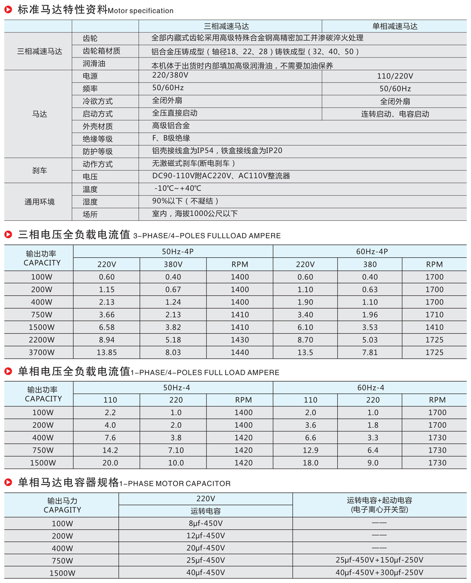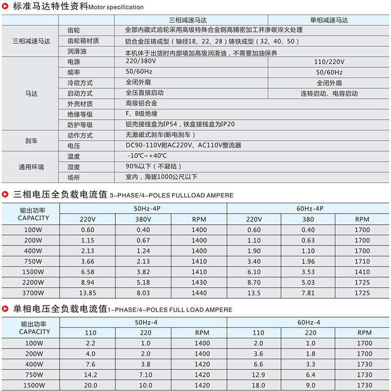 标准马达特性资料