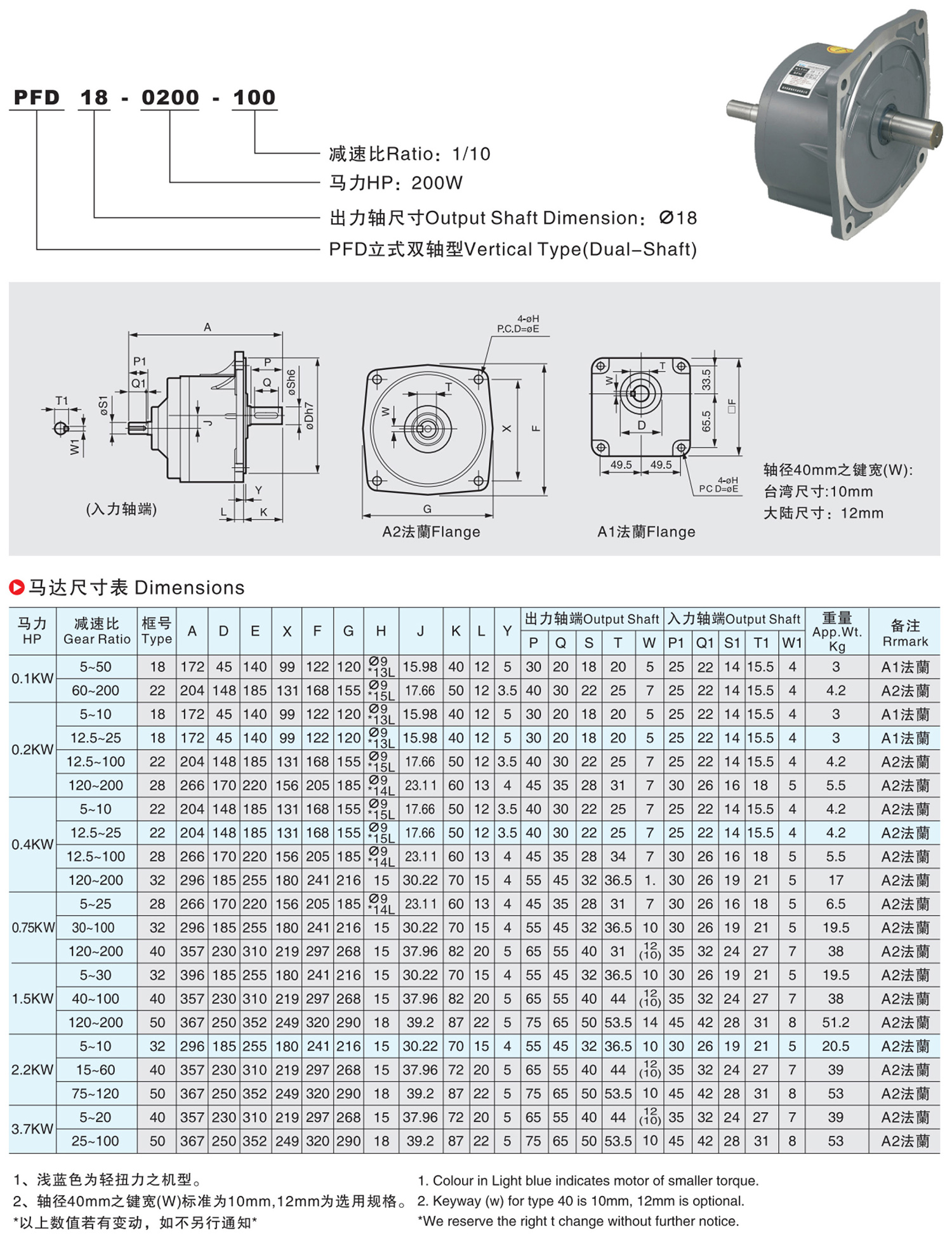 出力轴径对照表