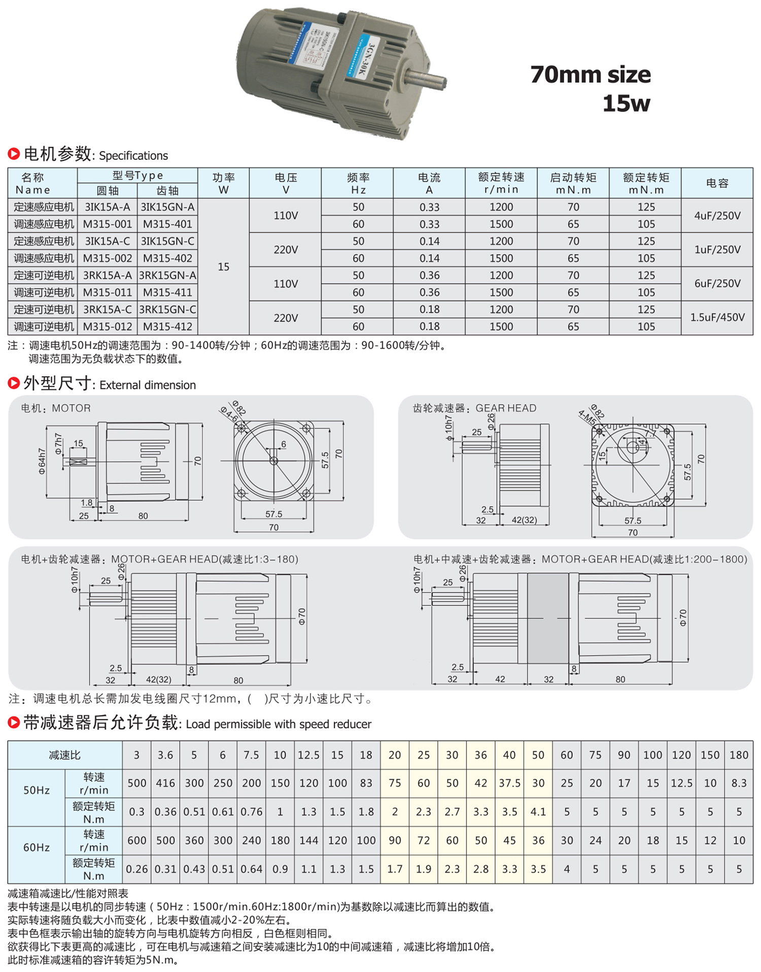 15w交流减速马达