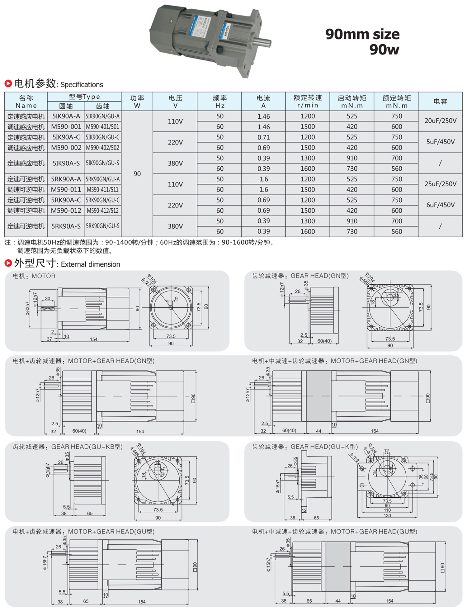 90w交流减速马达